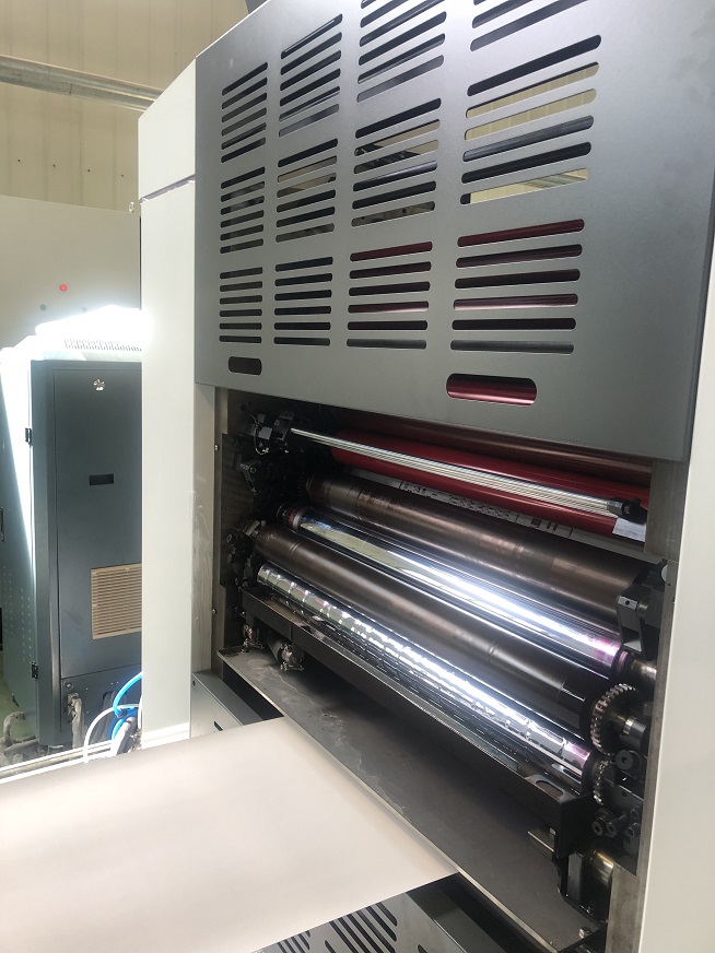 2018年9月19日,公司全體員工經過近11個月的辛勤付出,首臺中大幅面660間隙式輪轉膠印機 研發成功,順利下線,標志著公司又邁上了新的臺階